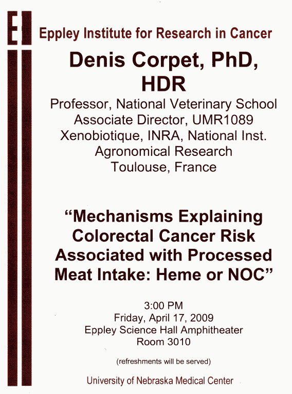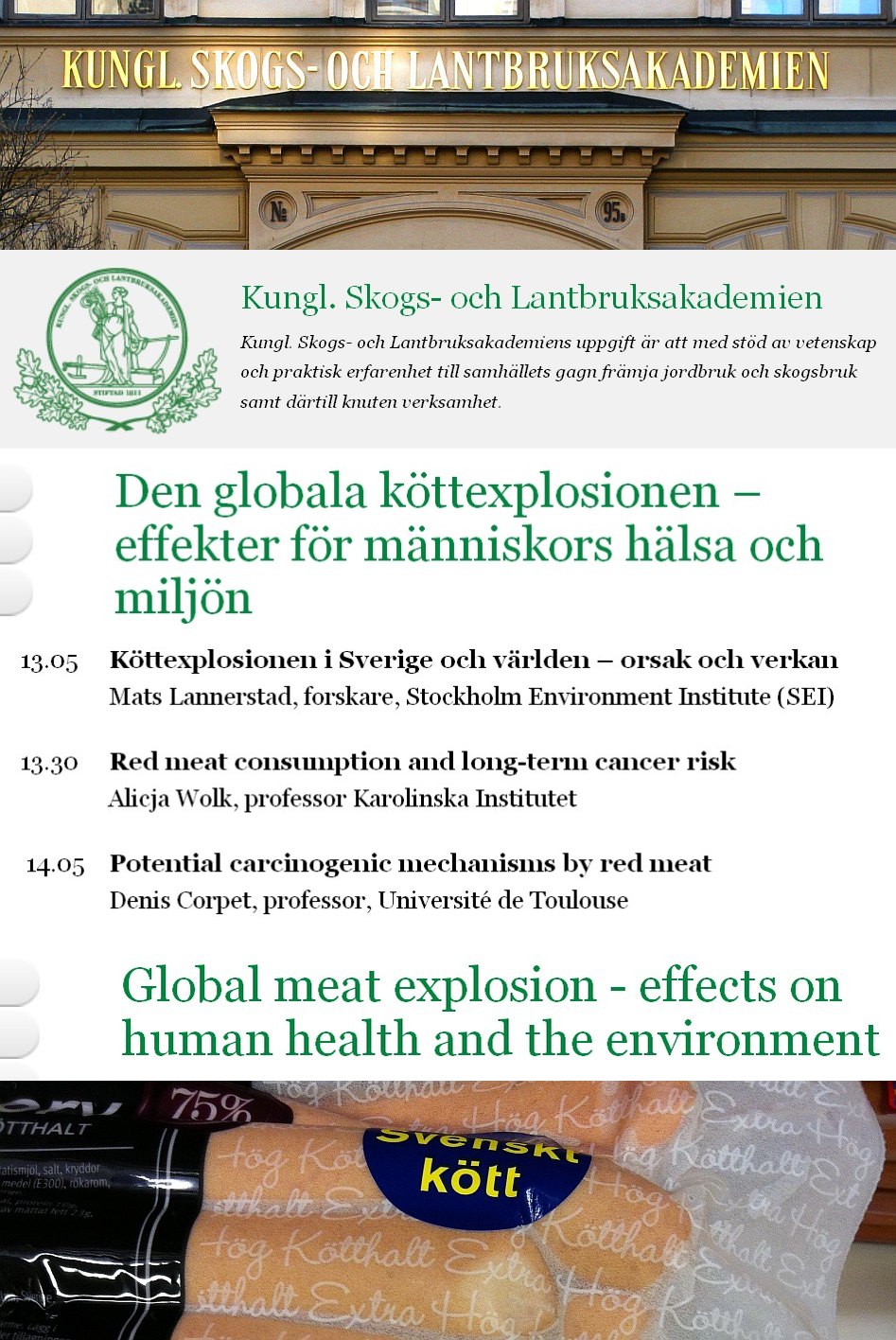 - 7 mai 2012, conférence devant l'Académie Royale d'Agriculture de Suède, du Prof. D.E. Corpet, invité par la KSLA Stockholm - Den globala köttexplosionen "Potential carcinogenic mechanisms by red meat"