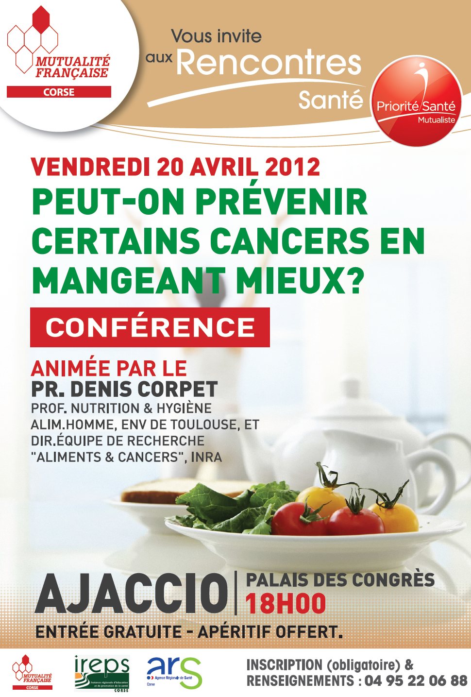 - 15 et 17 avril 2012, deux conférences de D.Corpet, invité. Mutualité et Prévention., Bastia et Ajaccio, Corse