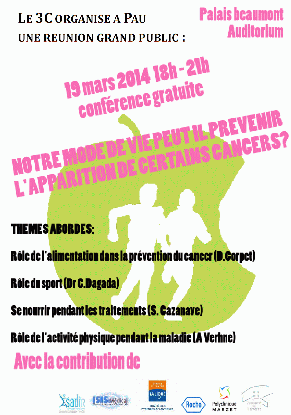 - 19 mars 2014, Palais Beaumont, ville de Pau : Rôle de l'alimentation dans la prévention des cancers