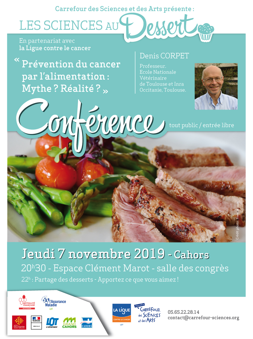 - 7 nov. 2019, Cahors, Carrefour des Sciences et des Arts, La Science au Dessert: Conférence Prof.Corpet : Prévention du cancer par l'alimentation, Mythe? Réalité?