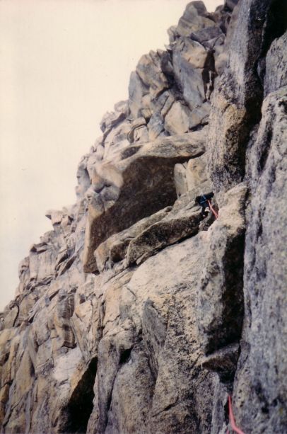 Quelle belle course, bien "classique" : on grimpe longtemps sur du très beau, du très solide, plutôt "facile" et sympa. Et les deux sommets, l'un rocheux, l'autre enneigé, et le "Z": quel pied! D'en face cela semble impossible (voir photo ci-contre =>) Mais le cheminement est si intelligent, que tout passe facilement. Quelles couleurs ces gros blocs de granit rouge le pied dans la neige!