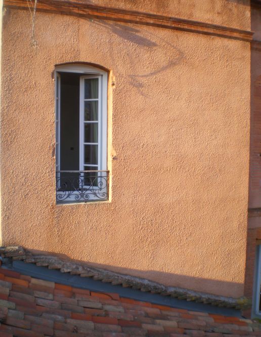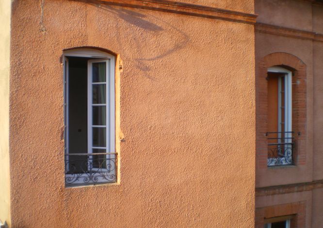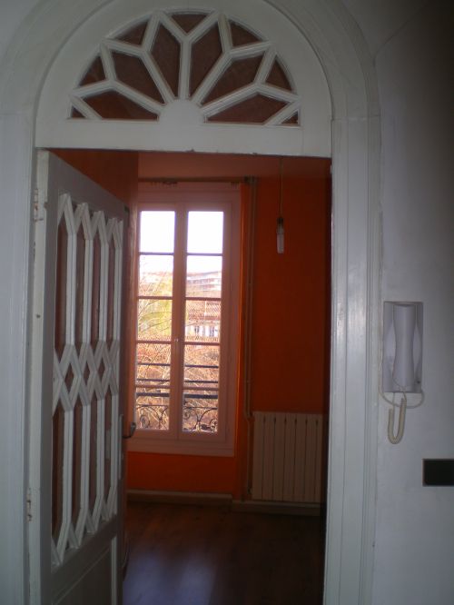 Au deuxième étage d'un petit immeuble ancien (3 étages), fait de jolies briques toulousaines roses. Belle cage d'escalier.