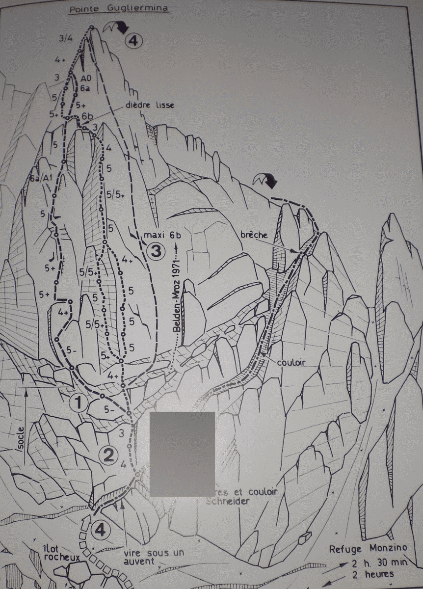 Aller faire l'Aiguille Gugliermina, sur le versant Sud-Ouest de l'aiguille Blanche de Peuterey, par la voie ouverte par G. Gervasutti et G. Boccalate en 1938, c'est aller faire un grand voyage, une mini-expédition.