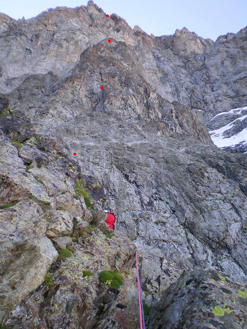 Ailefroide face NW, voie Gervasutti-Devies, ED-