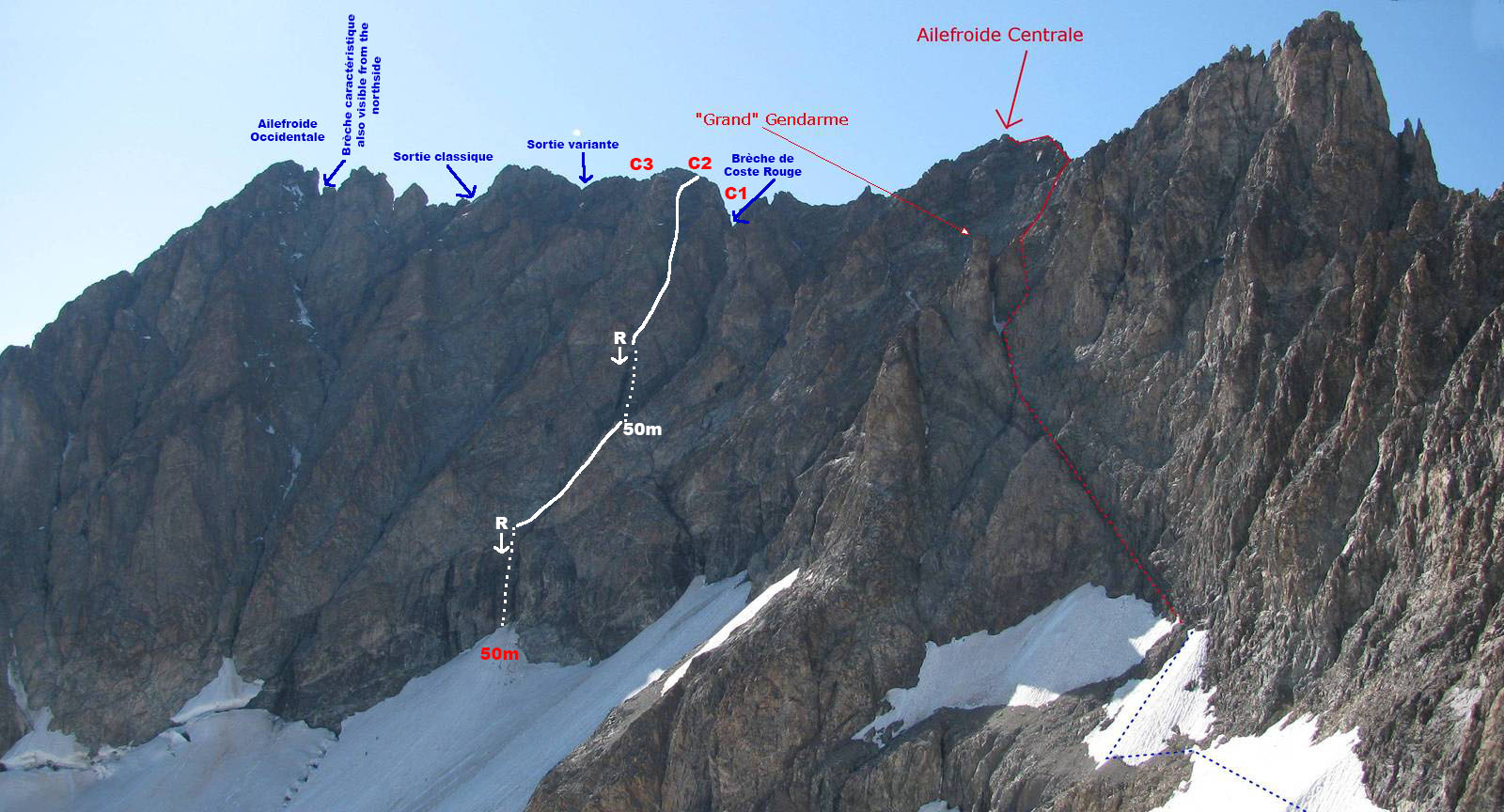 Face Sud-Est Ailefroide. Tracé de la Descente par Tobias Bailer
