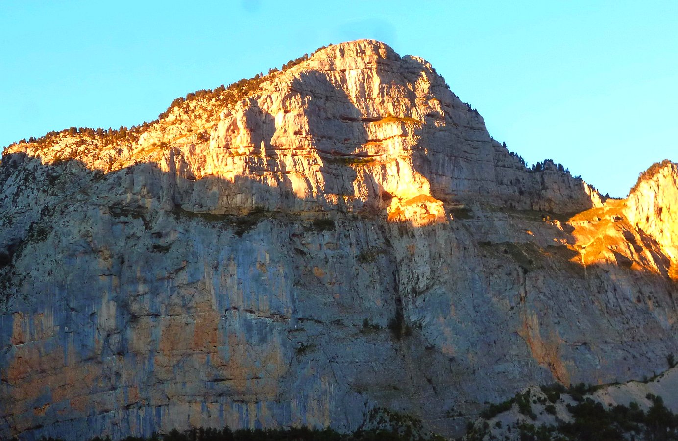 La voie du Levant : Grande classique du Diois, sur la droite du "chateau" dans le cirque d'Archiane au sud du Vercors. Une très belle voie "old school", équipée à l'ancienne, et pas trop dure. Noël Dupré la Tour et Denis Corpet le 20 Août 2015.
