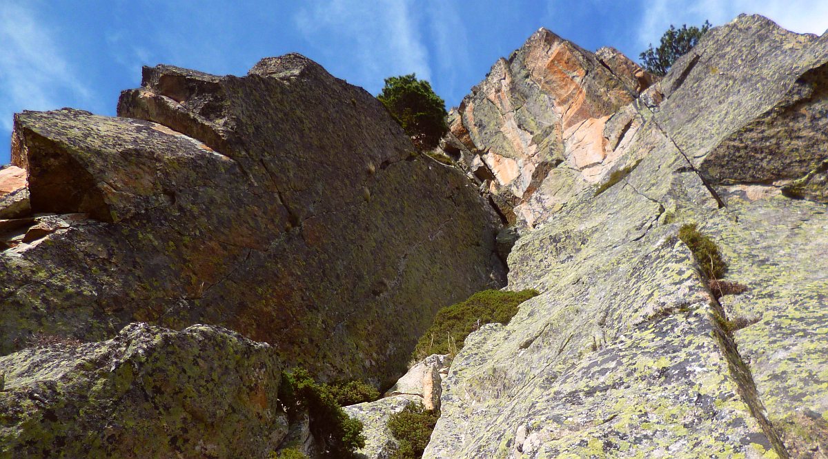 Escalade granite, Pique rouge de Belcaire, Ariège, Pyrénées, France