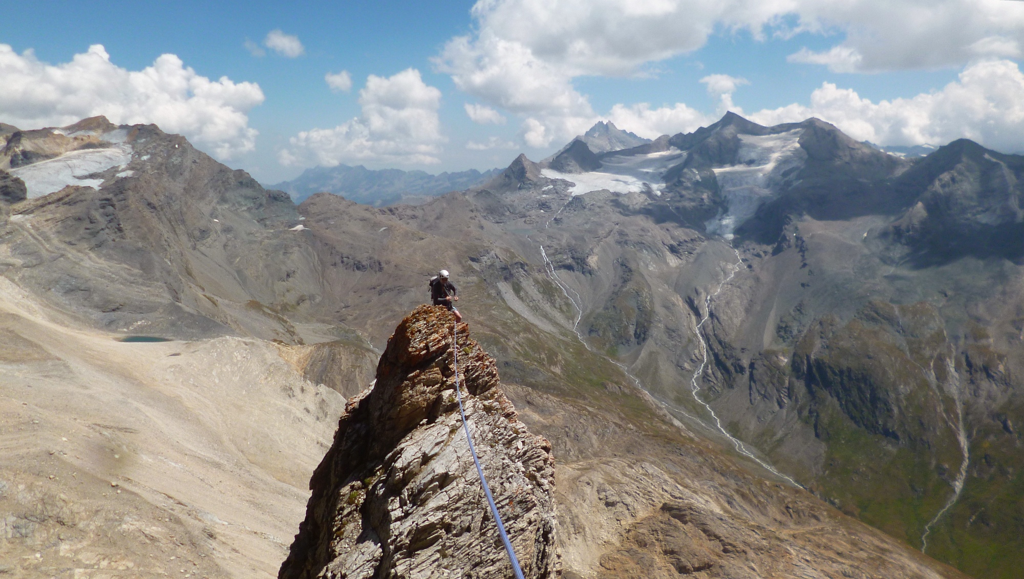 Grande voie: rocher exceptionnel, deux passages de 6a (évitables), glacier à la deszcente: un beau sommet de Vanoise, Alpes française