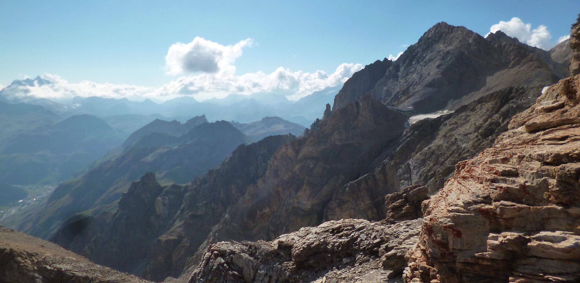 Grande voie: rocher exceptionnel, deux passages de 6a (évitables), glacier à la deszcente: un beau sommet de Vanoise, Alpes française