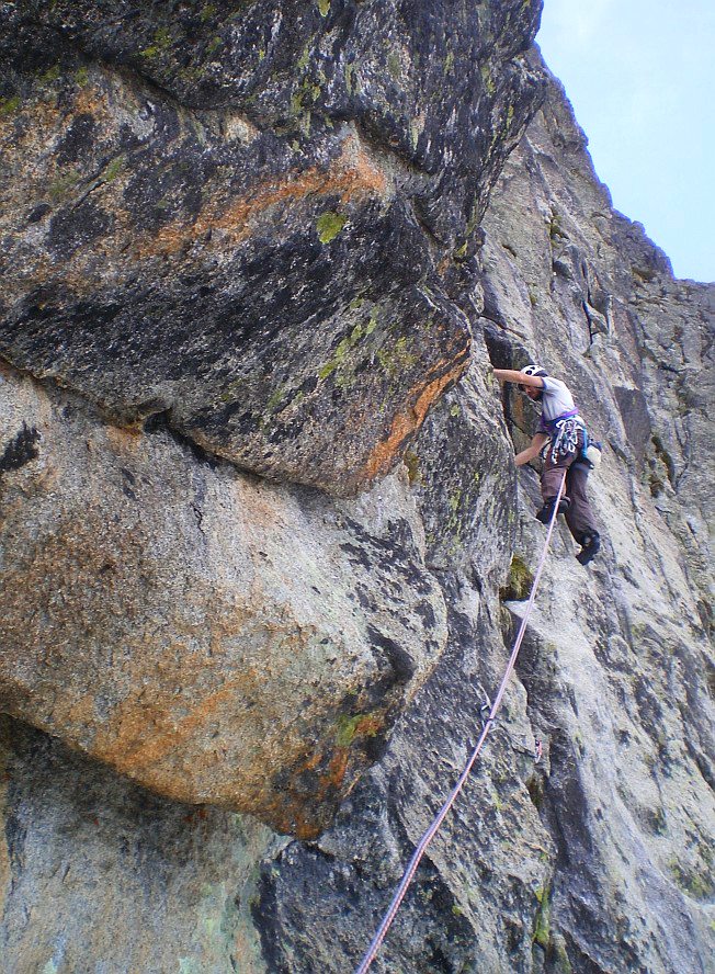 Superbe granite de haute montagne, exposé au Sud-Sud-Ouest, voie semi-équipée: