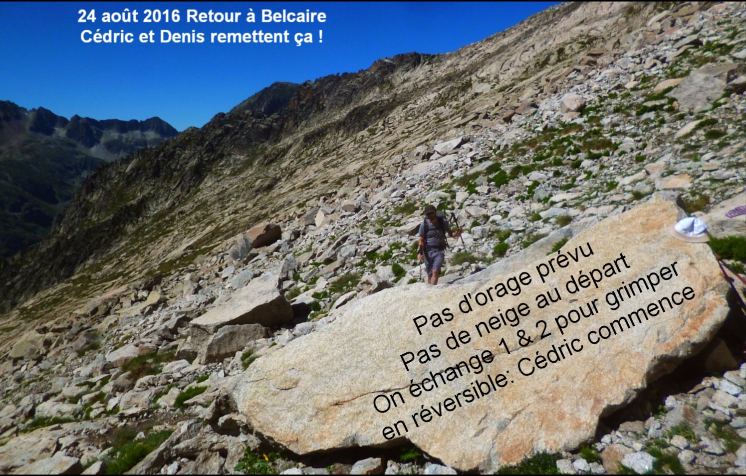 Deuxième essai 24 aout 2016. Grand beau, on sort la voie au sommet
