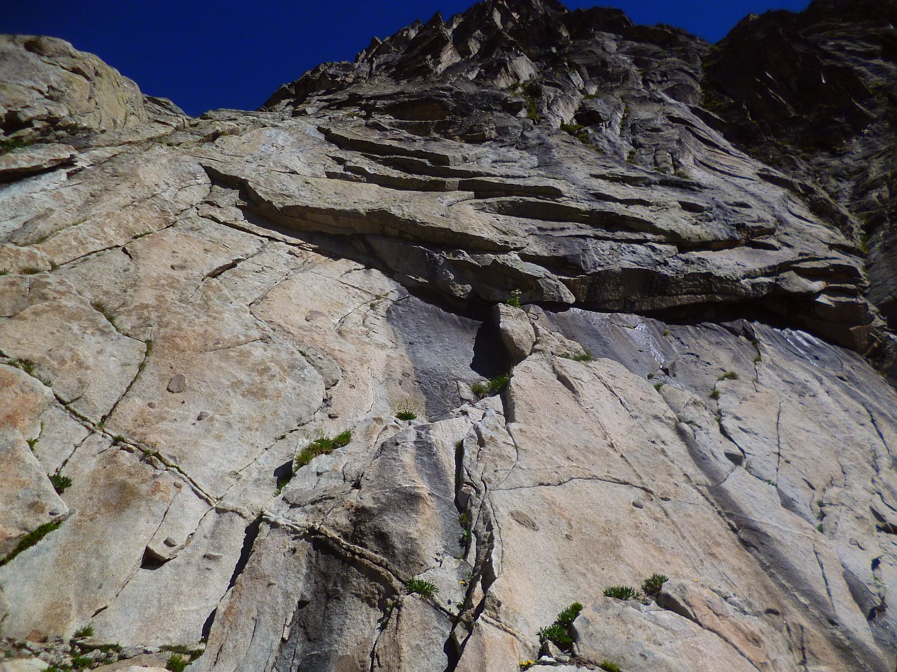 Superbe granite de haute montagne, exposé au Sud-Sud-Ouest, voie semi-équipée: