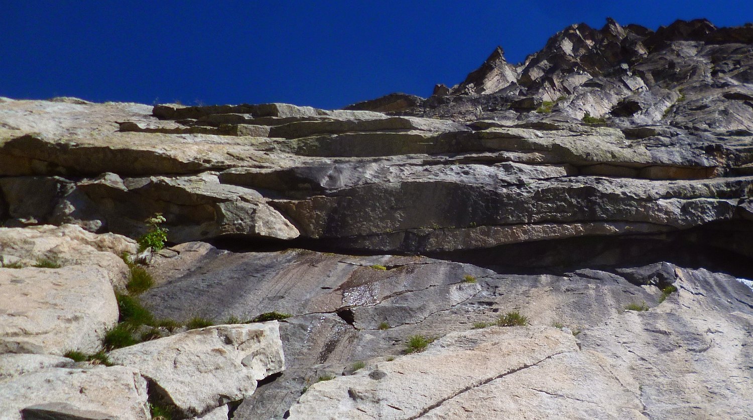 Superbe granite de haute montagne, exposé au Sud-Sud-Ouest, voie semi-équipée: