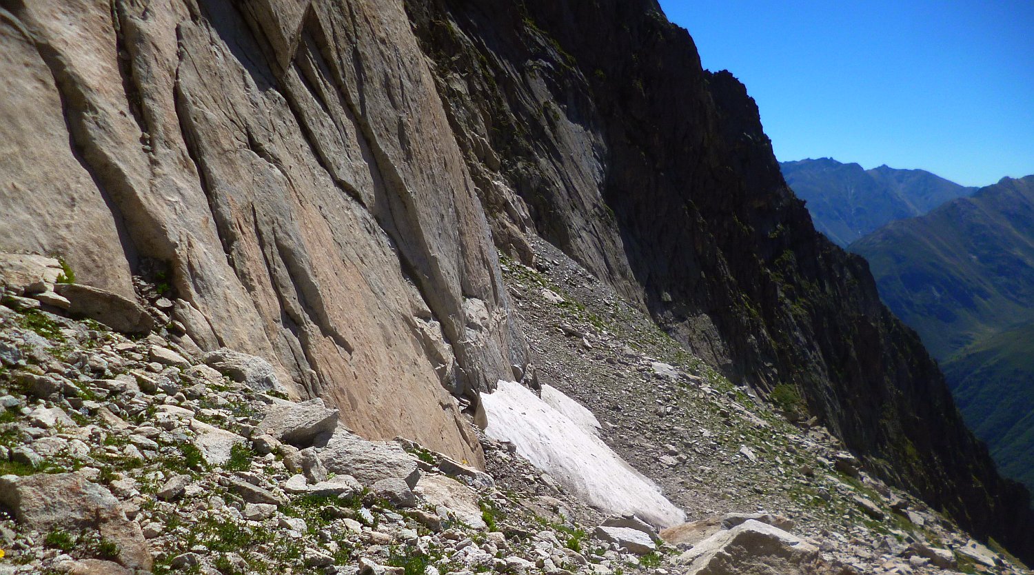 Superbe granite de haute montagne, exposé au Sud-Sud-Ouest, voie semi-équipée: