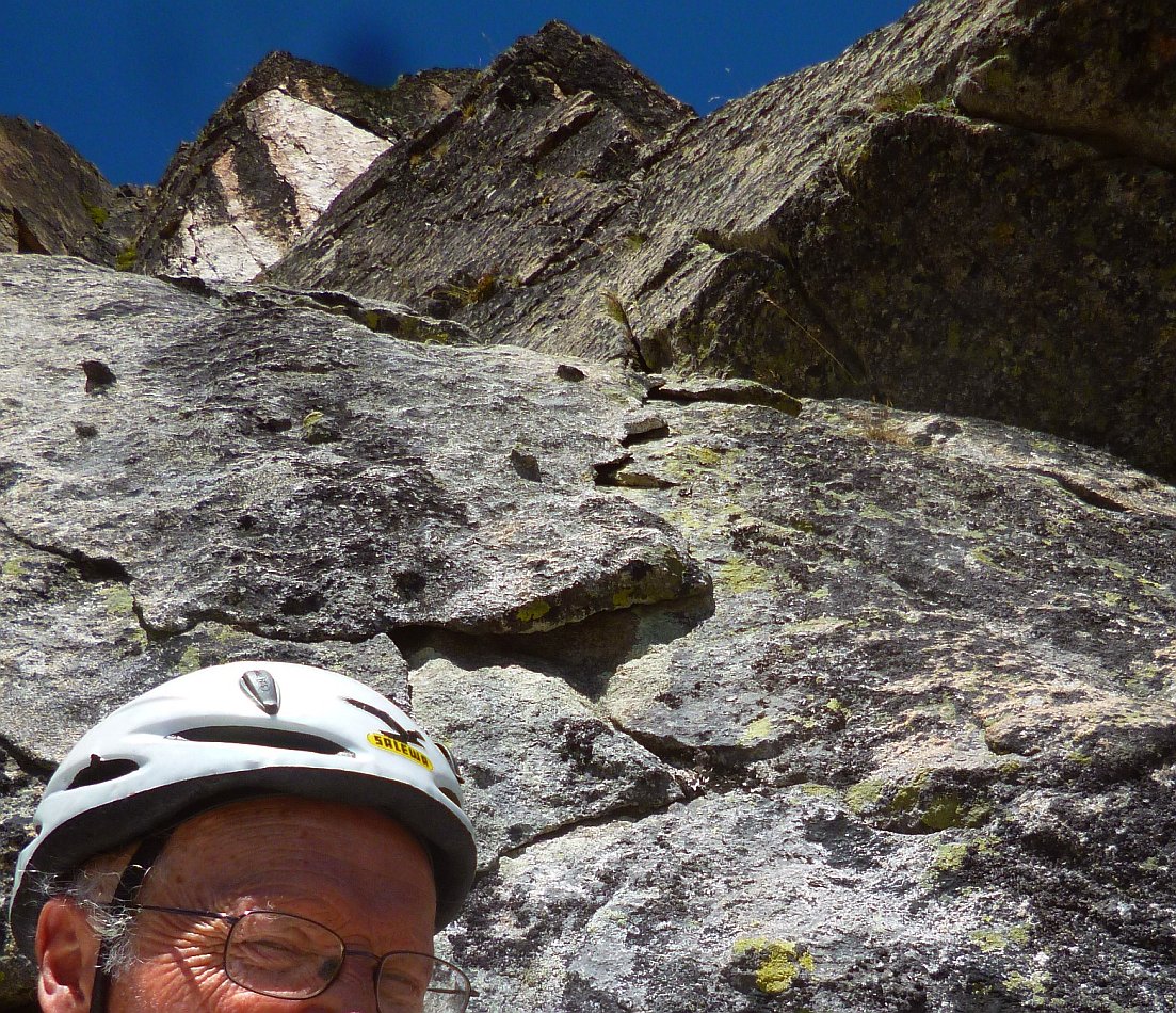 Superbe granite de haute montagne, exposé au Sud-Sud-Ouest, voie semi-équipée: