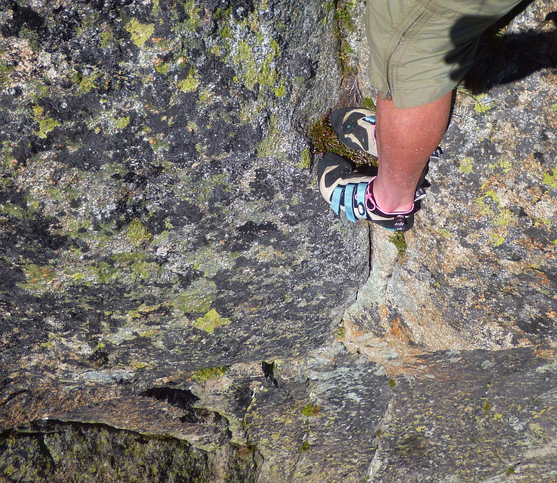 Superbe granite de haute montagne, exposé au Sud-Sud-Ouest, voie semi-équipée: