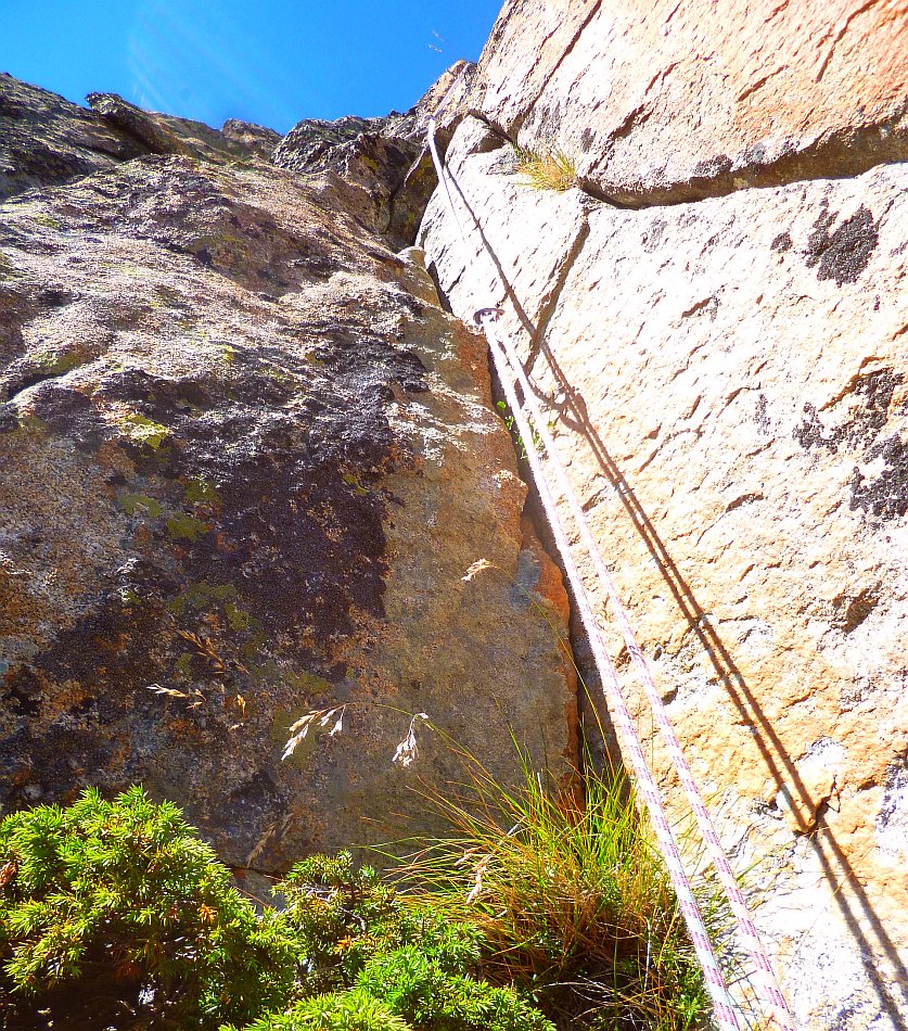Superbe granite de haute montagne, exposé au Sud-Sud-Ouest, voie semi-équipée: