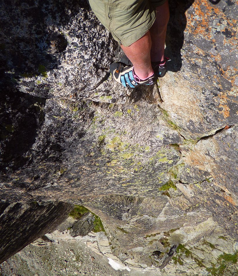 Superbe granite de haute montagne, exposé au Sud-Sud-Ouest, voie semi-équipée: