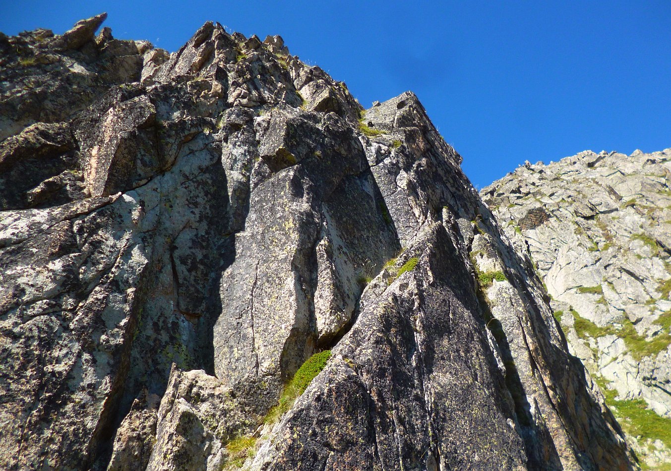 Superbe granite de haute montagne, exposé au Sud-Sud-Ouest, voie semi-équipée: