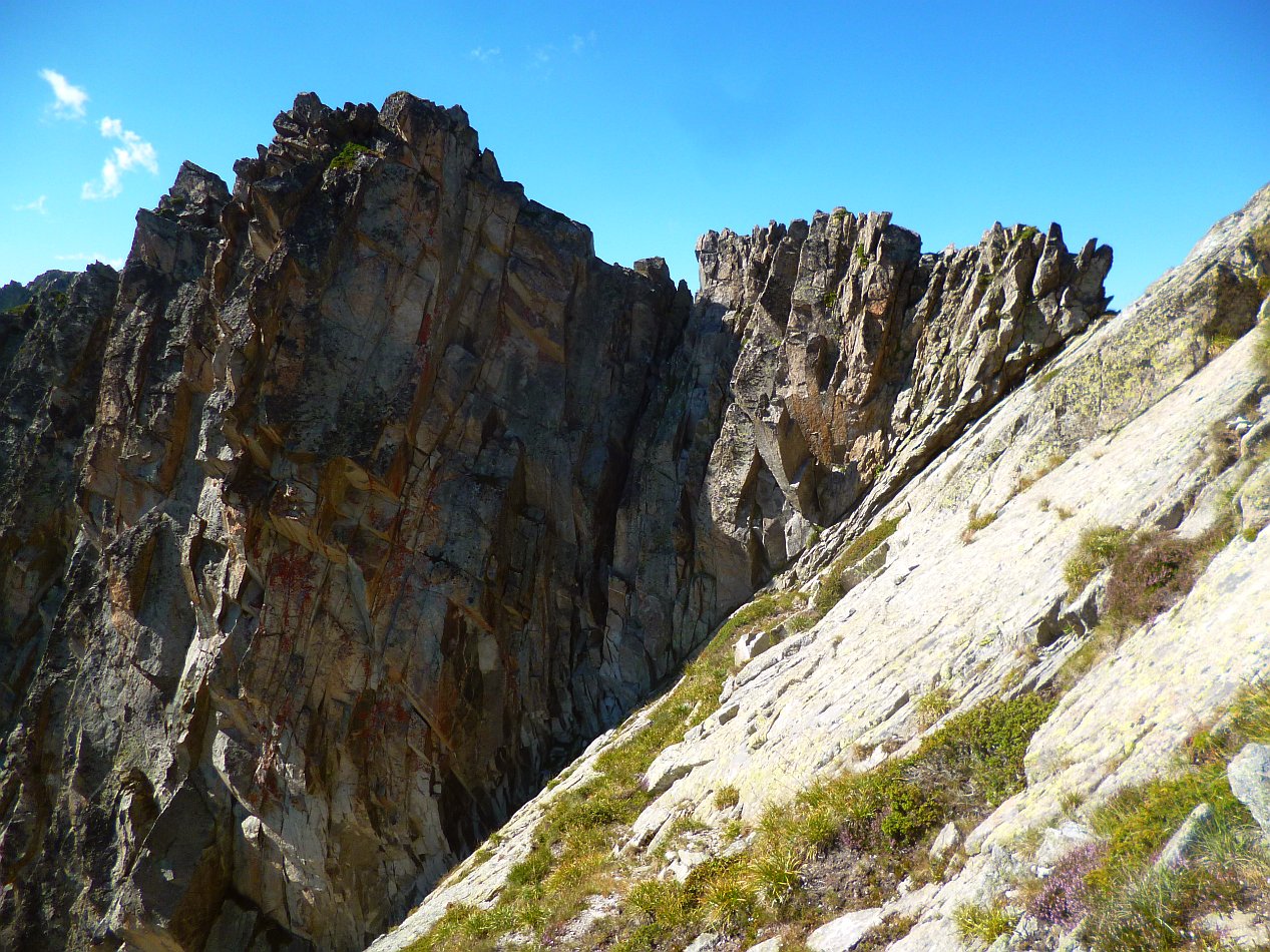 Superbe granite de haute montagne, exposé au Sud-Sud-Ouest, voie semi-équipée: