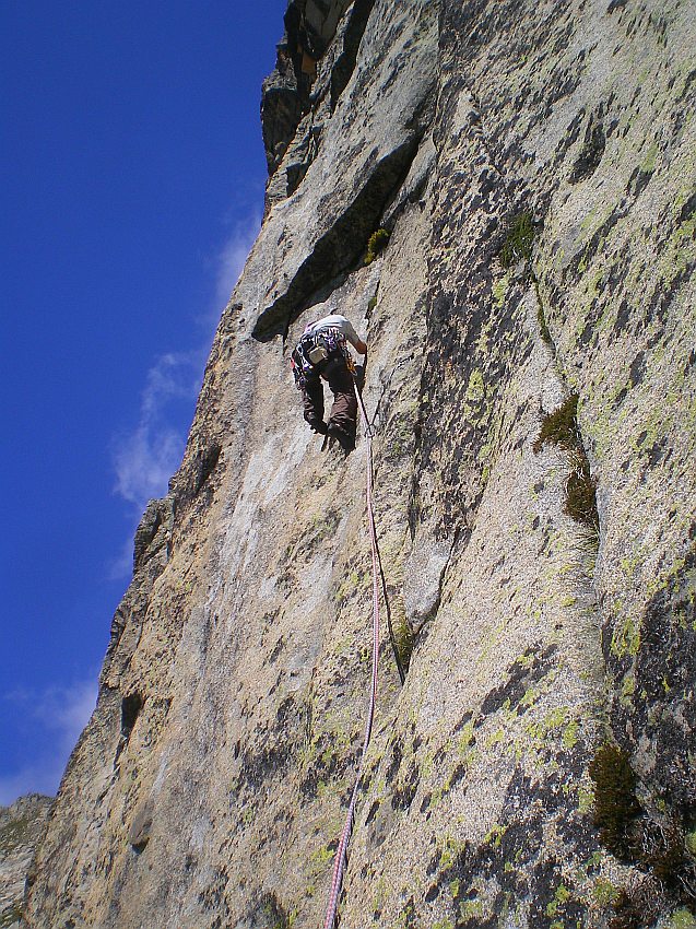 Escalade de la voie Friscounette au pic de Belcaire, 6-8 longueurs, 6a