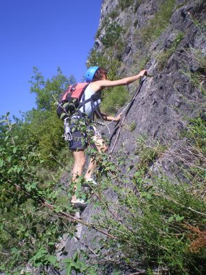 Cinq à sept longeurs d'escalade, beaucoup de 5 (facile) + 2 ou 3 pas de 5b+ vive les clous/