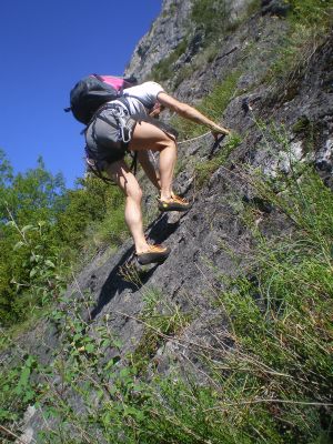 Cinq à sept longeurs d'escalade, beaucoup de 5 (facile) + 2 ou 3 pas de 5b+ vive les clous/