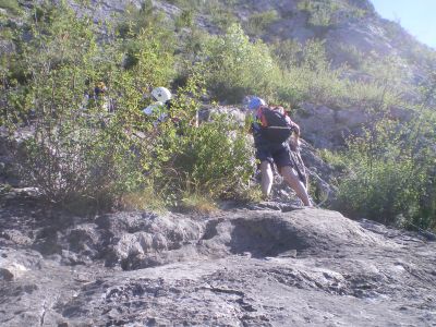 Cinq à sept longeurs d'escalade, beaucoup de 5 (facile) + 2 ou 3 pas de 5b+ vive les clous/