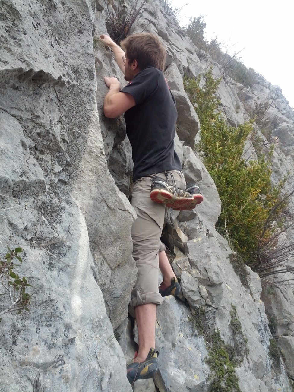 Escalade solo PY Decaudin et Denis Corpet, 26 mars 2015 - Voie des Pères tranquilles, puis Roujas 2