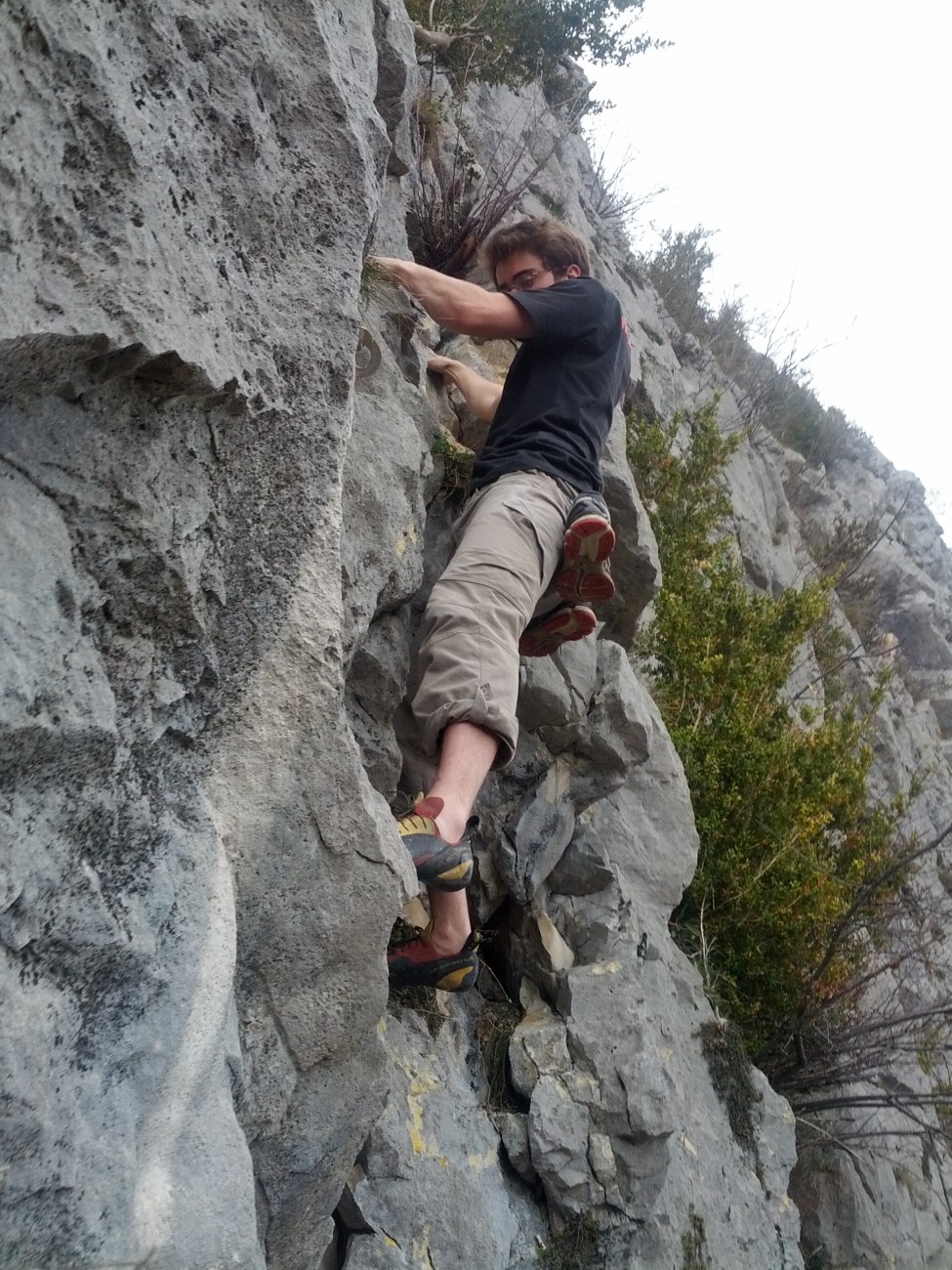 Escalade solo PY Decaudin et Denis Corpet, 26 mars 2015 - Voie des Pères tranquilles, puis Roujas 2