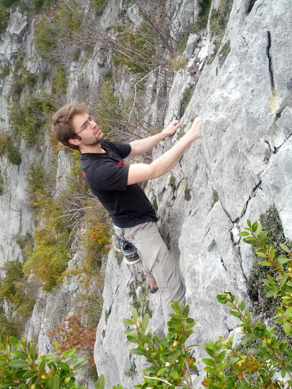 Escalade solo PY Decaudin et Denis Corpet, 26 mars 2015 - Voie des Pères tranquilles, puis Roujas 2