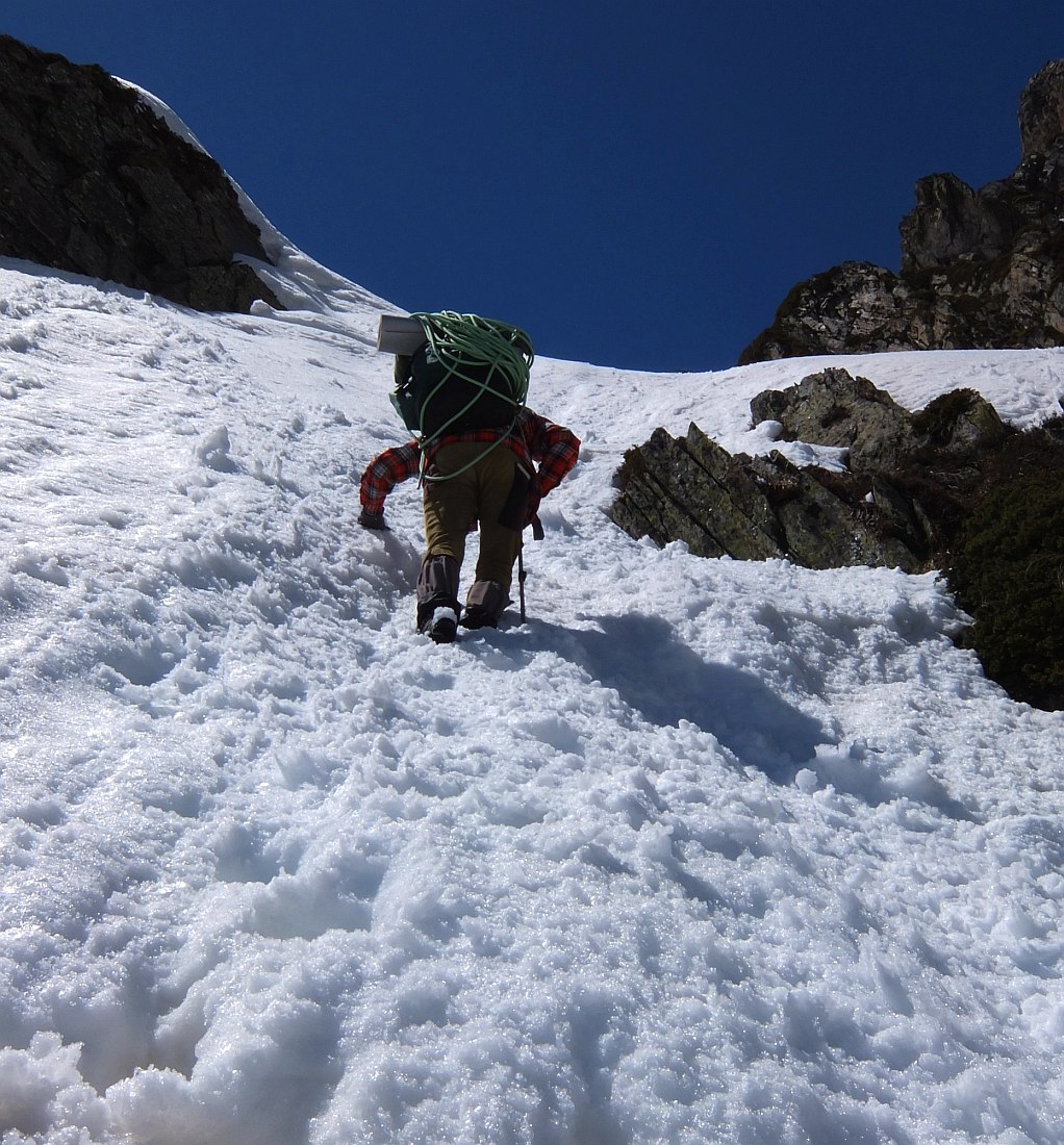 +1550m dont 1100m dans la face S.E., départ 1825m+ Bivouac par -15°C
