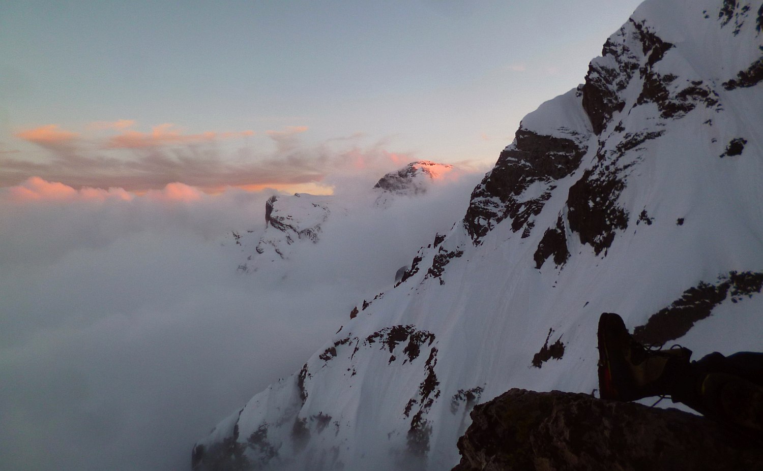 +1550m dont 1100m dans la face S.E., départ 1825m+ Bivouac par -15°C