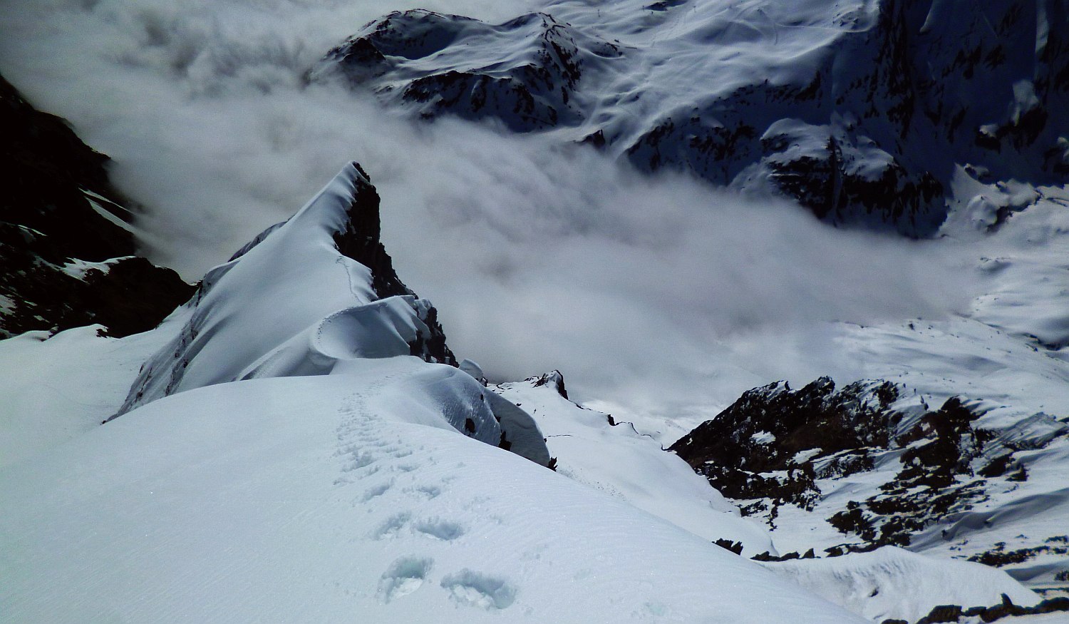 +1550m dont 1100m dans la face S.E., départ 1825m+ Bivouac par -15°C