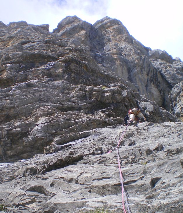 Denis Corpet & Noël dupré la Tour escaladent la voie du "Carnaval du Doute", à la Tête Blanche du col de Colombière dans les Aravis