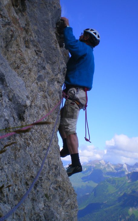 Denis Corpet & Noël dupré la Tour escaladent la voie du "Carnaval du Doute", à la Tête Blanche du col de Colombière dans les Aravis