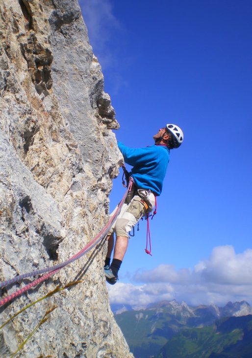 Denis Corpet & Noël dupré la Tour escaladent la voie du "Carnaval du Doute", à la Tête Blanche du col de Colombière dans les Aravis