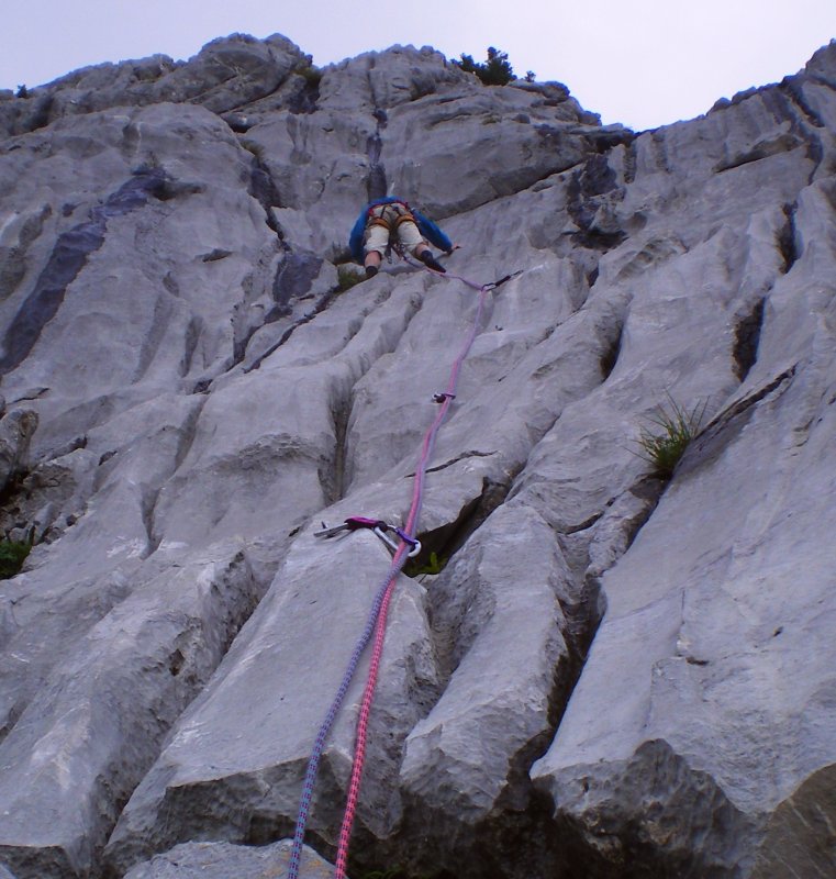 Belle voie de belle ambiance, avec un vrai passage d'artif, au soleil et sur un calcaire correct. Equipement correct (clous et spits). Descente par une raide pente d'herbe puis un bon sentier