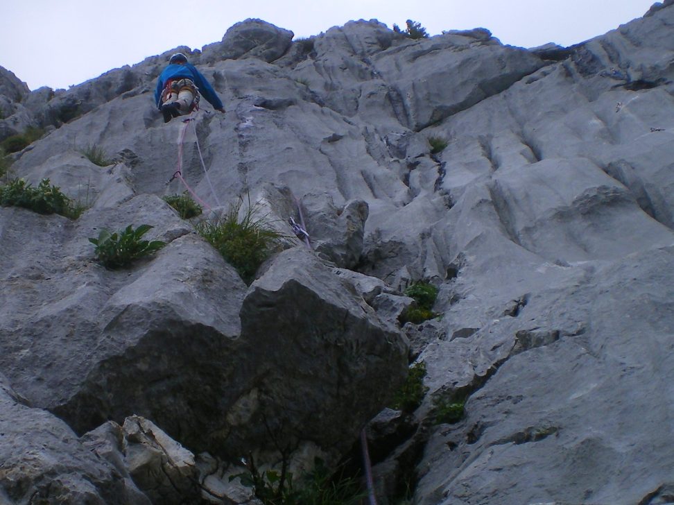 Belle voie de belle ambiance, avec un vrai passage d'artif, au soleil et sur un calcaire correct. Equipement correct (clous et spits). Descente par une raide pente d'herbe puis un bon sentier