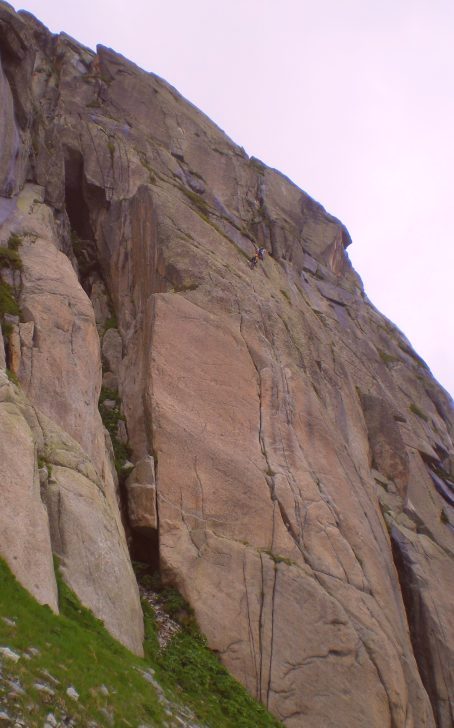 Superbe voie sur un granite de rêve, presque sèche en quelques heures, approche rapide depuis le refuge (on peut même laisser les grosses chaussures au sommet et descendre à l'attaque en rappel).
