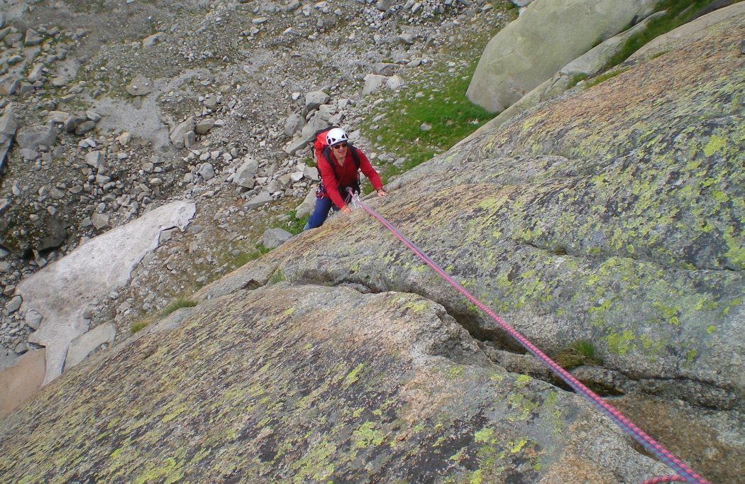 Superbe voie sur un granite de rêve, presque sèche en quelques heures, approche rapide depuis le refuge (on peut même laisser les grosses chaussures au sommet et descendre à l'attaque en rappel).