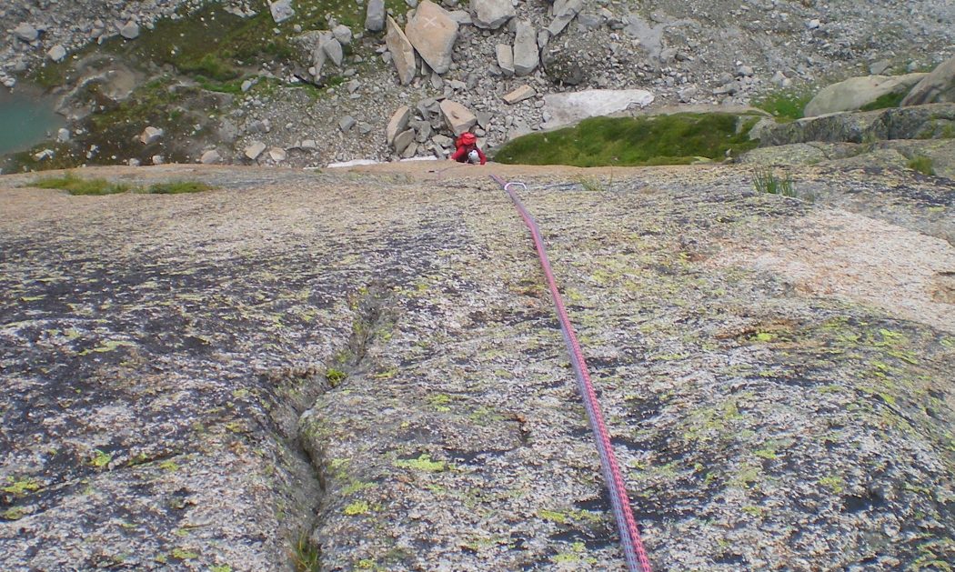 Superbe voie sur un granite de rêve, presque sèche en quelques heures, approche rapide depuis le refuge (on peut même laisser les grosses chaussures au sommet et descendre à l'attaque en rappel).