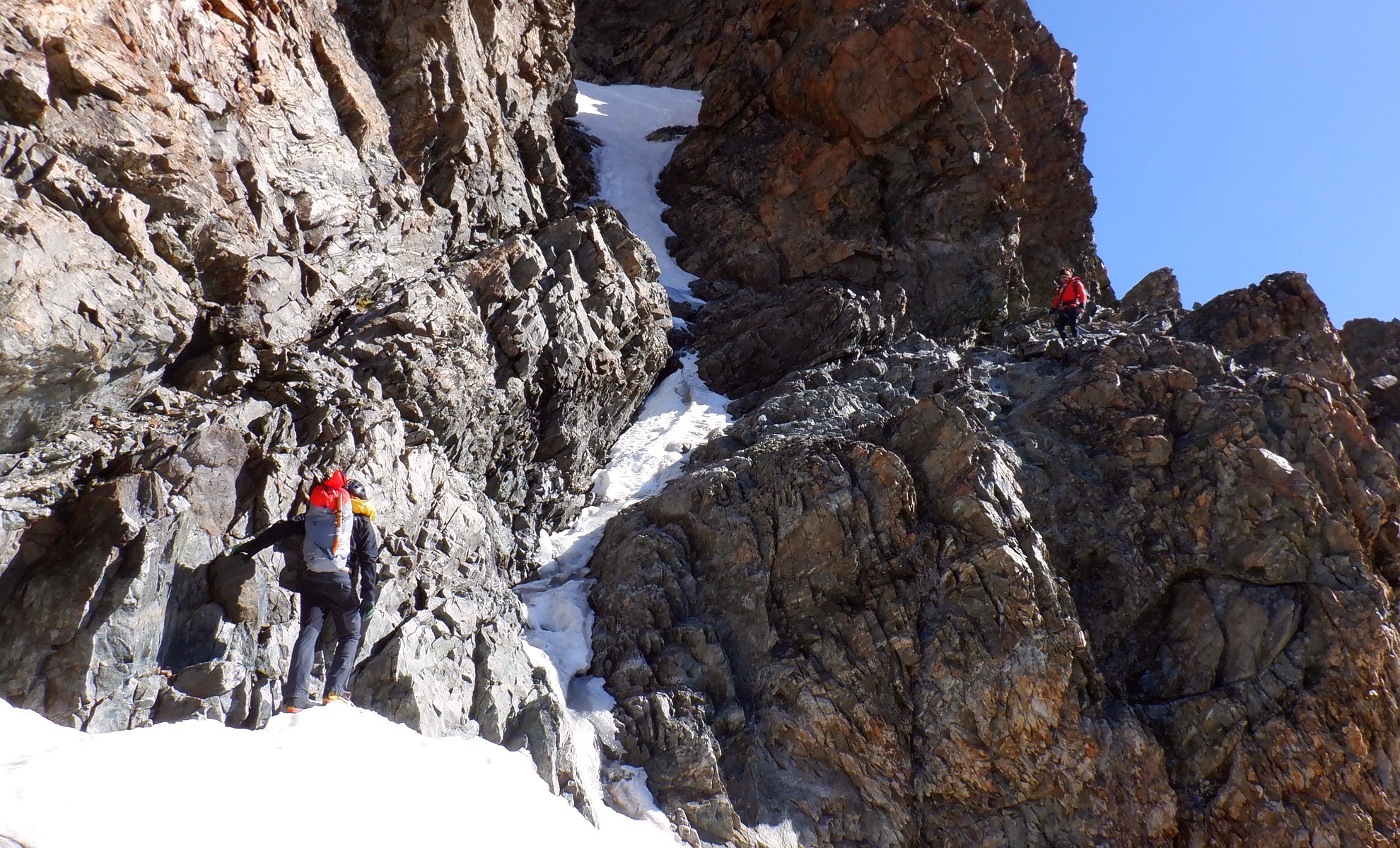 Grande voie: glacier, bon rocher facile, neige d'altitude: un beau sommet des Alpes
