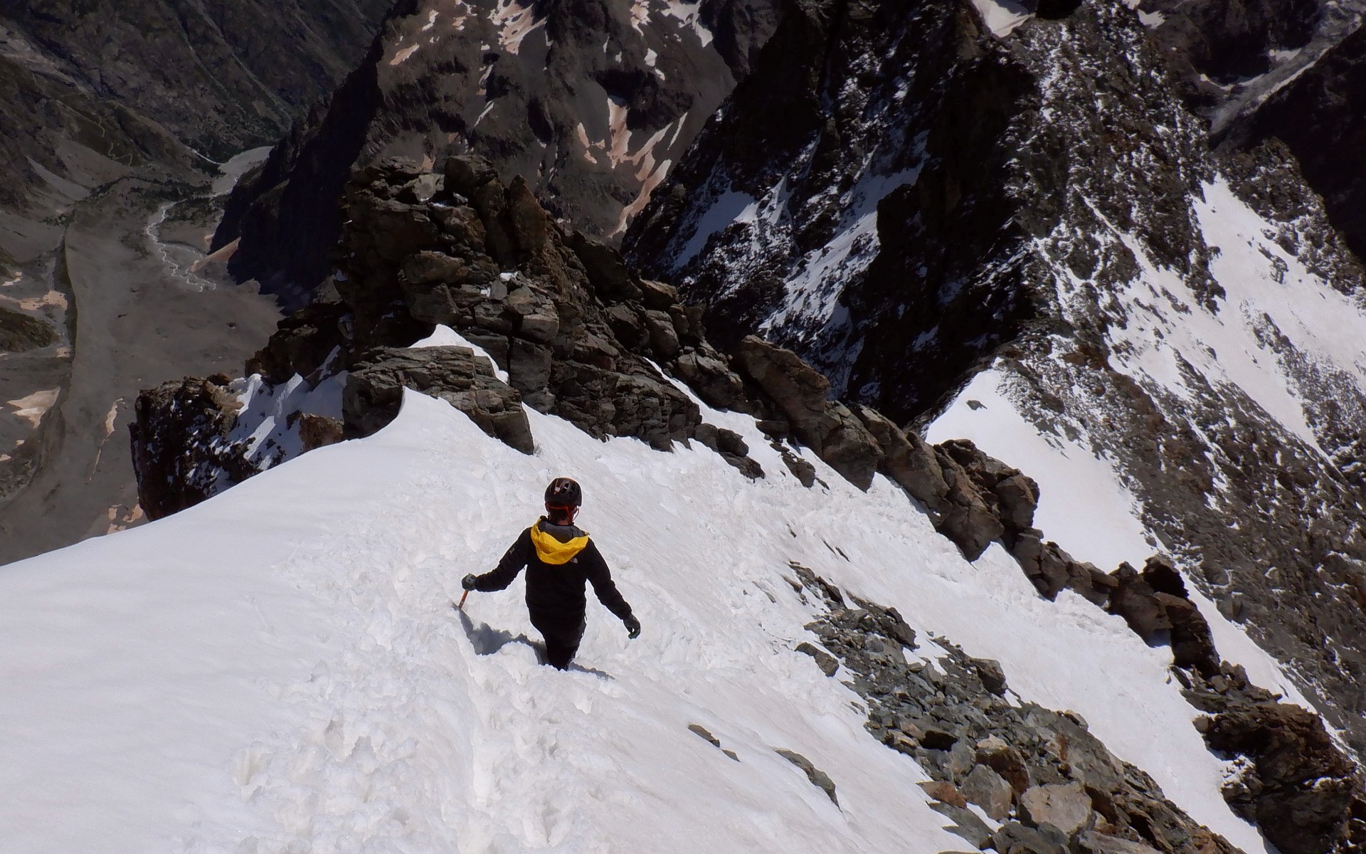 Grande voie: glacier, bon rocher facile, neige d'altitude: un beau sommet des Alpes