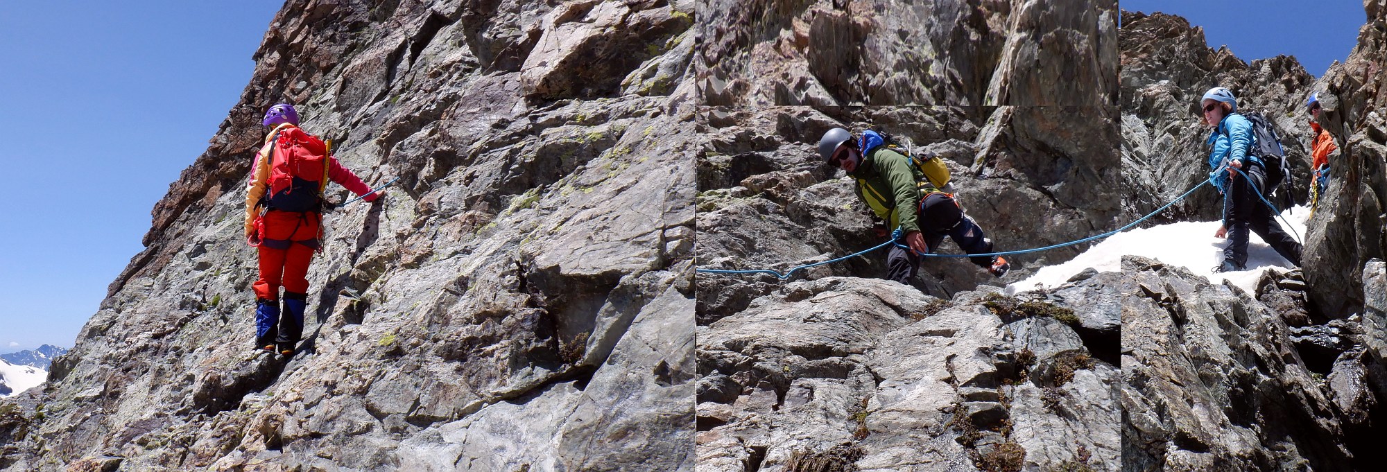 Grande voie: glacier, bon rocher facile, neige d'altitude: un beau sommet des Alpes