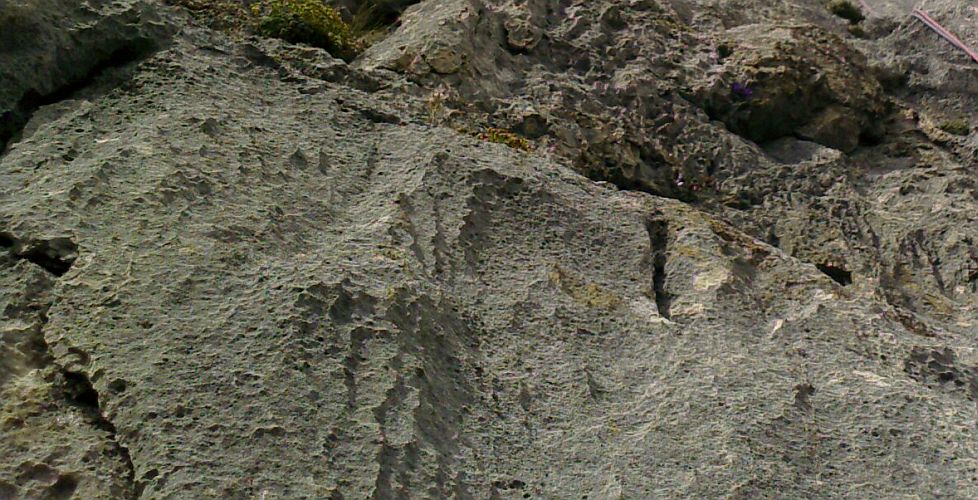 9- Continuer à gauche en contournant une nervure un peu délitée, après laquelle se trouve un dièdre ouvert (28 m, IV et IV+, Noël, R7).