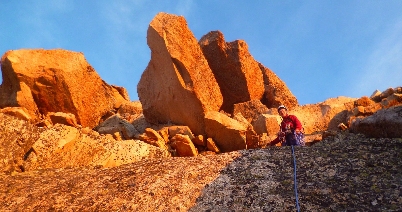 Golden needles traverse climbing pictures