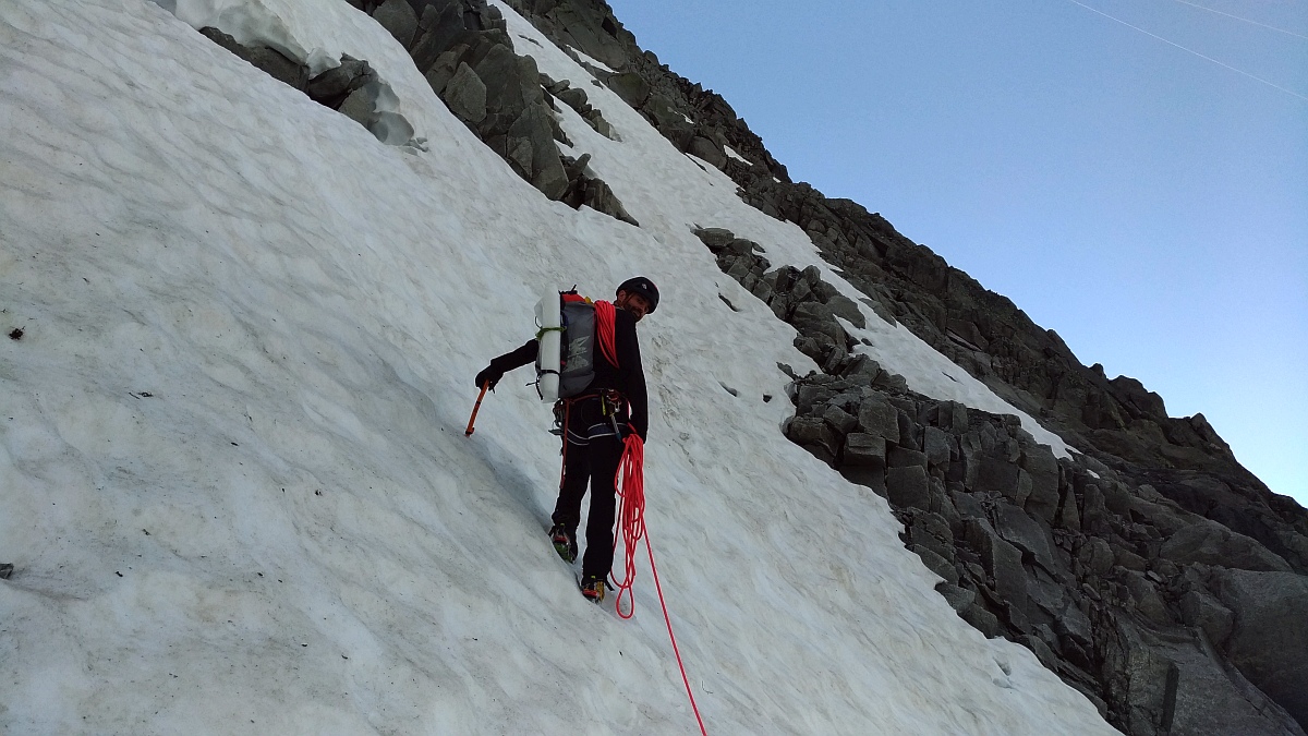 Photos de l'ascension de l'éperon Frendo, en face Nord de l'aiguille du Midi,