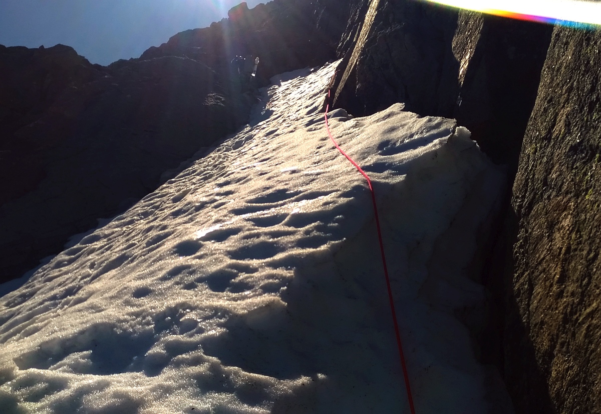 Nous sommes partis tranquillement de Sixt, pour prendre une des premières bennes (la 4eme ?), avons escaladé lebon granite de l'éperon dans la matinée, puis nous sommes posés pour un bivouac en hut de l'éperon rocheux. Départ pour la fin en neige, mixte et glace tôt le lendemain matin