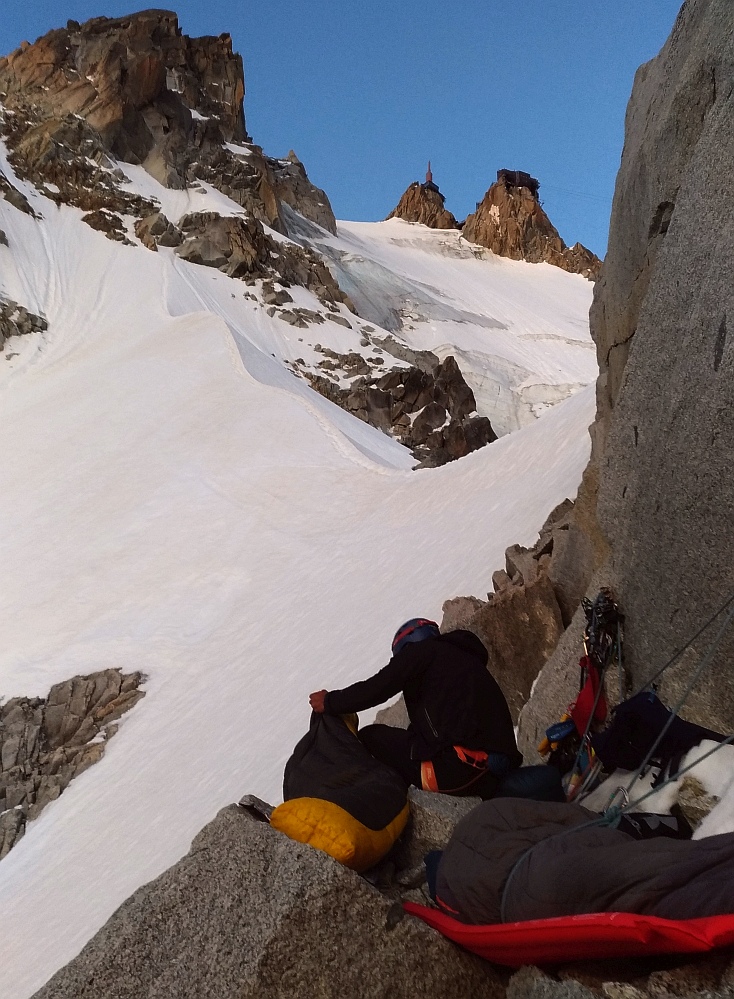 Photos de l'ascension de l'éperon Frendo, en face Nord de l'aiguille du Midi,